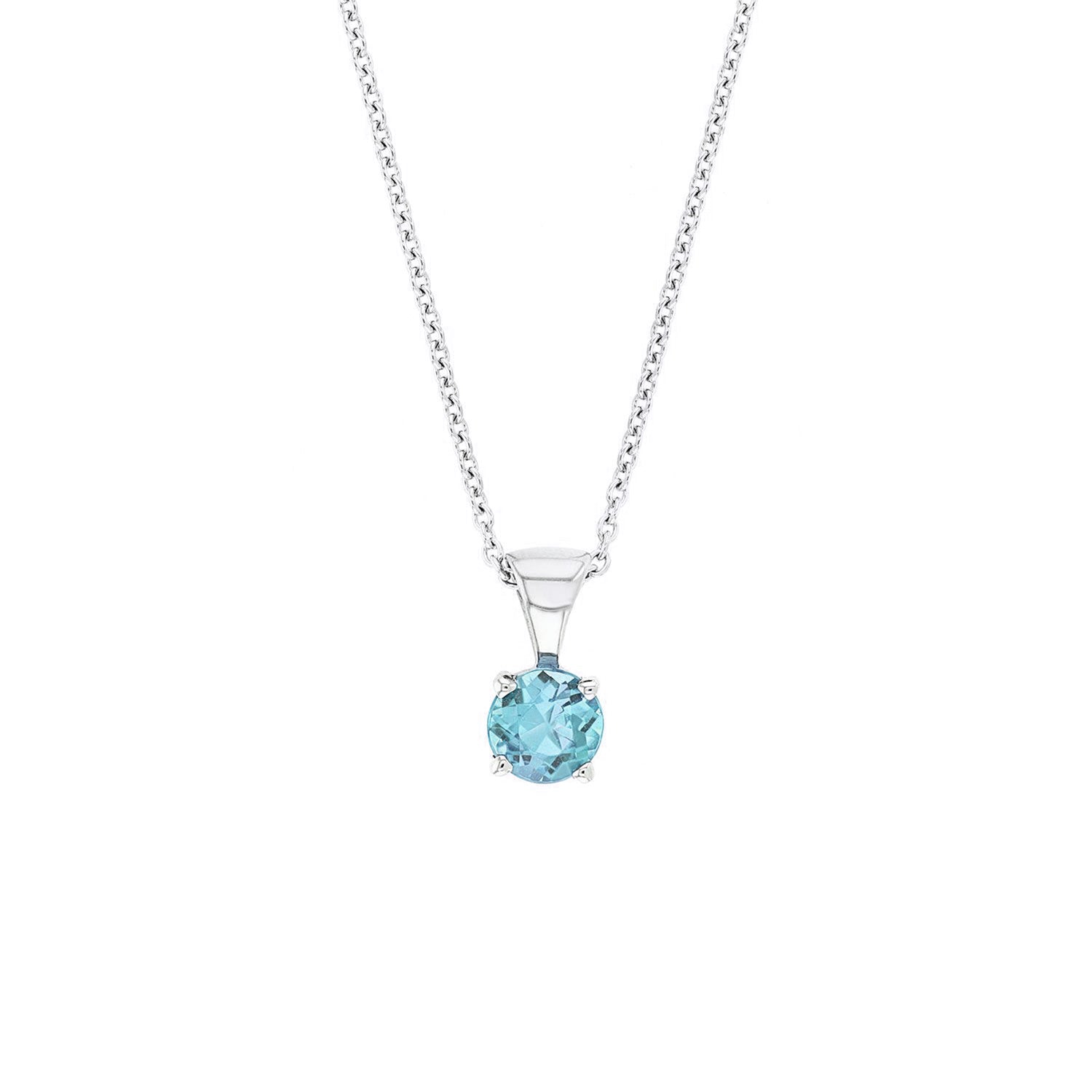 This blue zircon pendant has been set in 14K white gold. Chain sold separately.