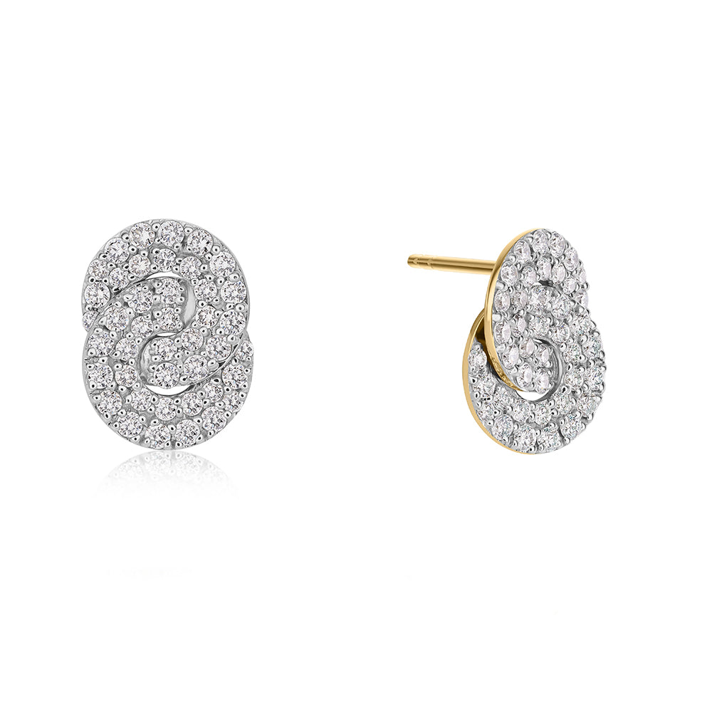 Our Diamond Large Double Interlocking Stud Earrings discs adorned with pave diamonds that interlock for a stunning effect. These earrings are not only a testament to our commitment to exquisite design but also to our unparalleled attention to detail. Our pave diamonds shine like no other, making these earrings a true statement piece.