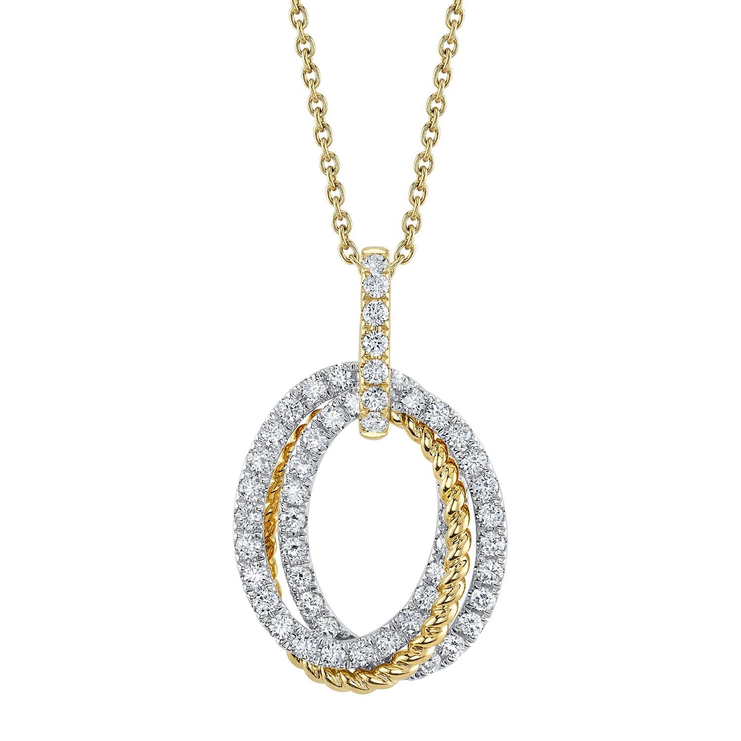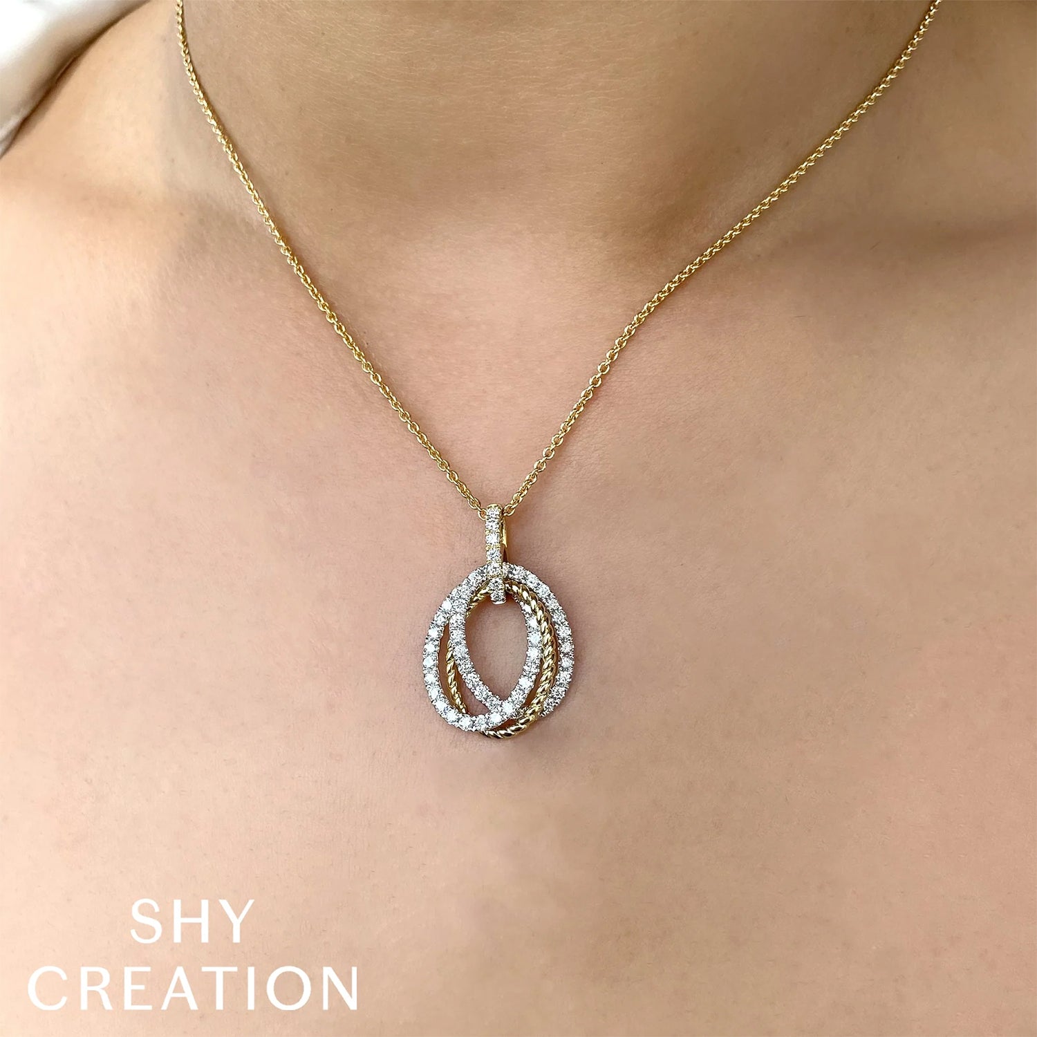 Shy Creation 14K Two-Tone Diamond Oval Necklace