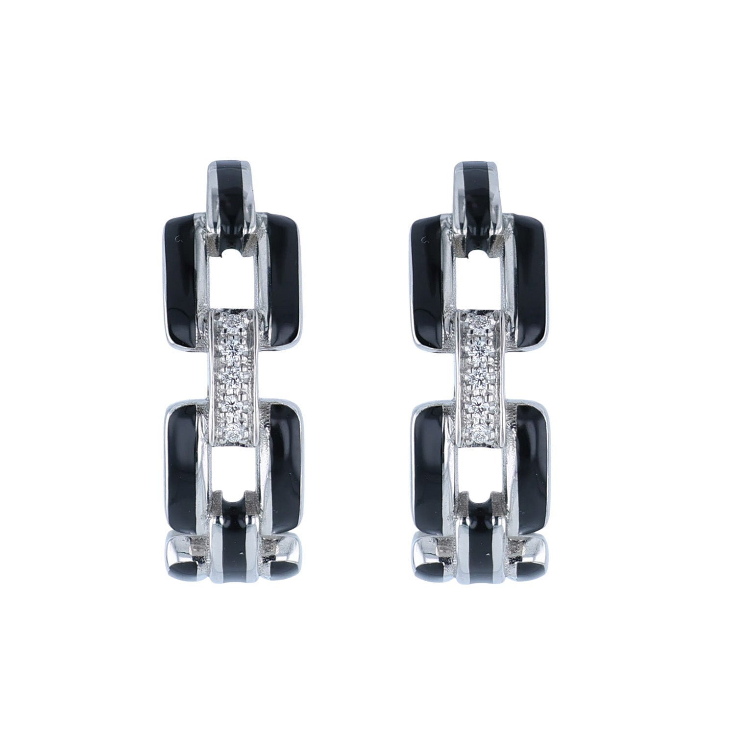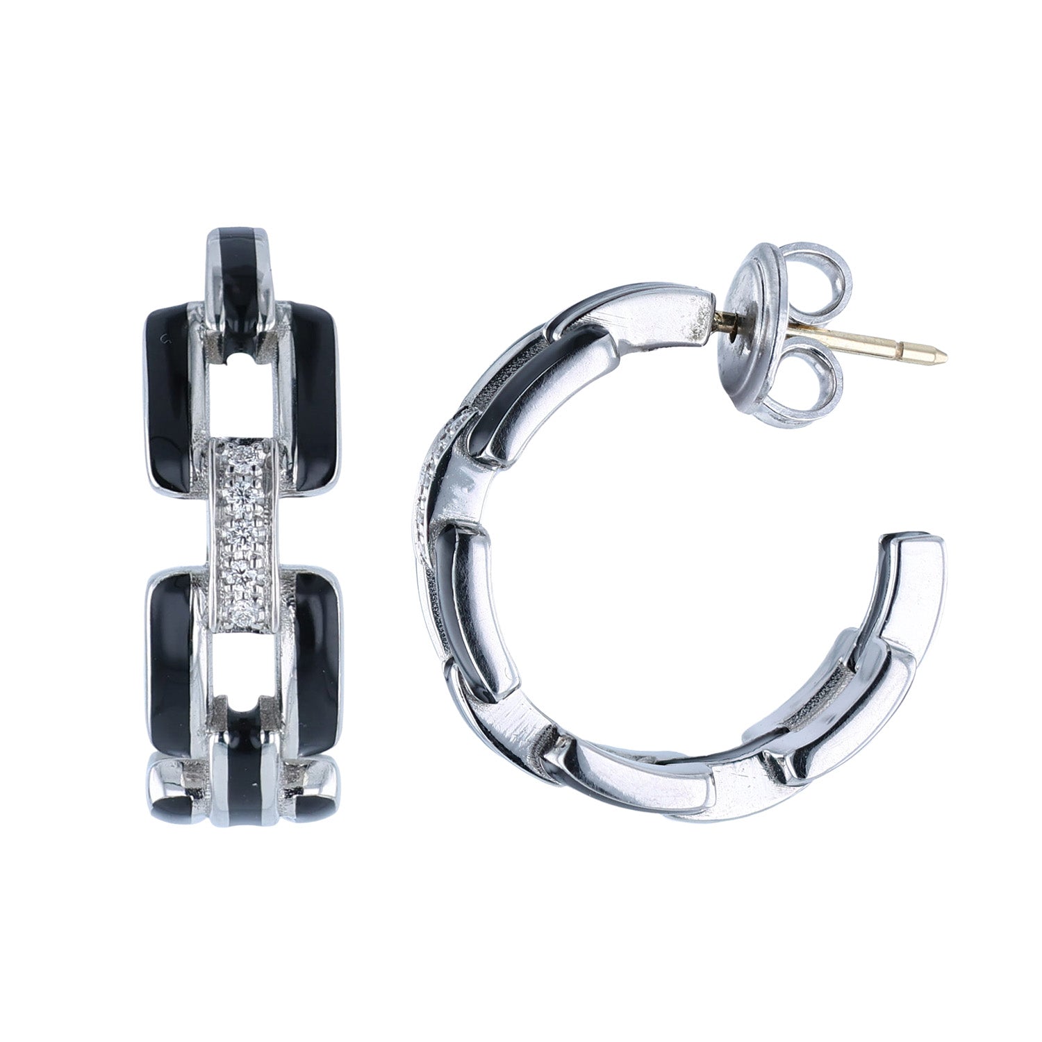 SOHO Sterling Silver Black Enamel Link Hoop Earrings