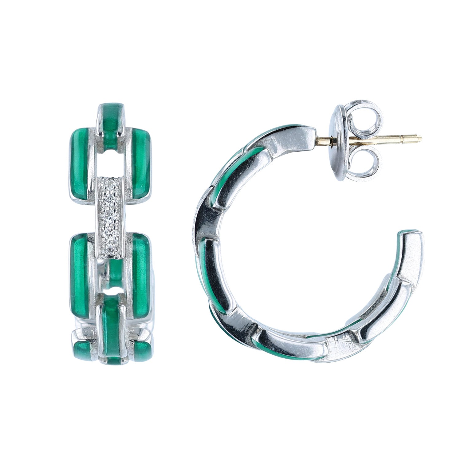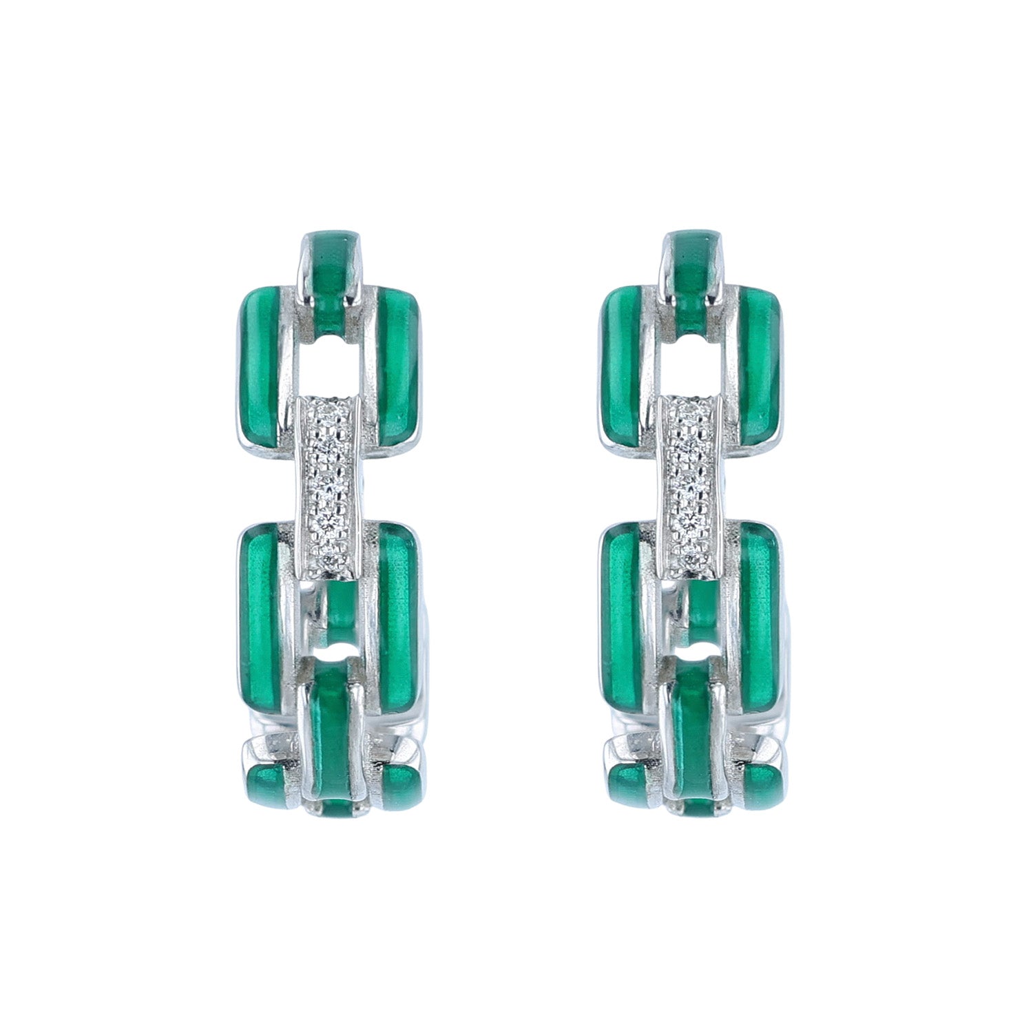SOHO Sterling Silver Green Enamel Link Hoop Earrings