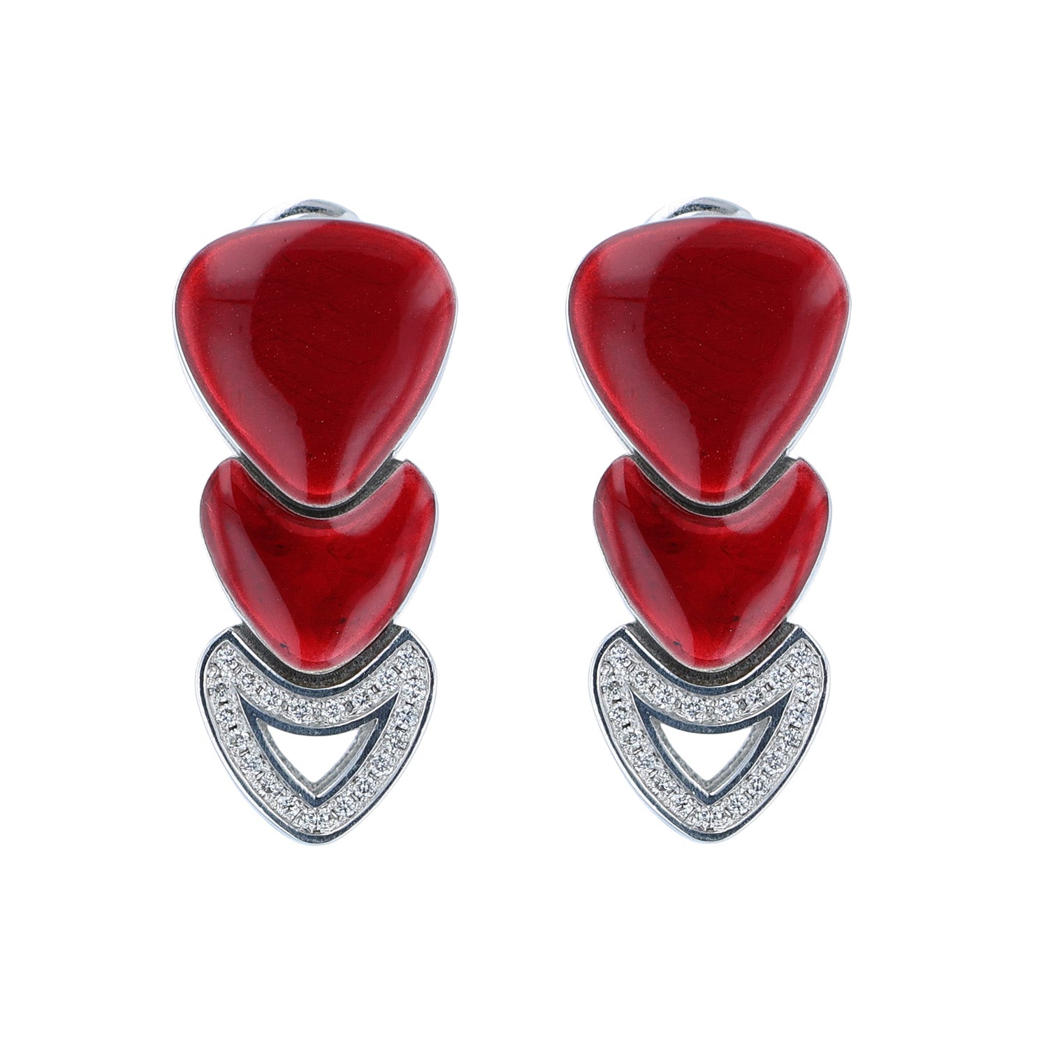 SOHO Sterling Silver Red Enamel Diamond Drop Earrings
