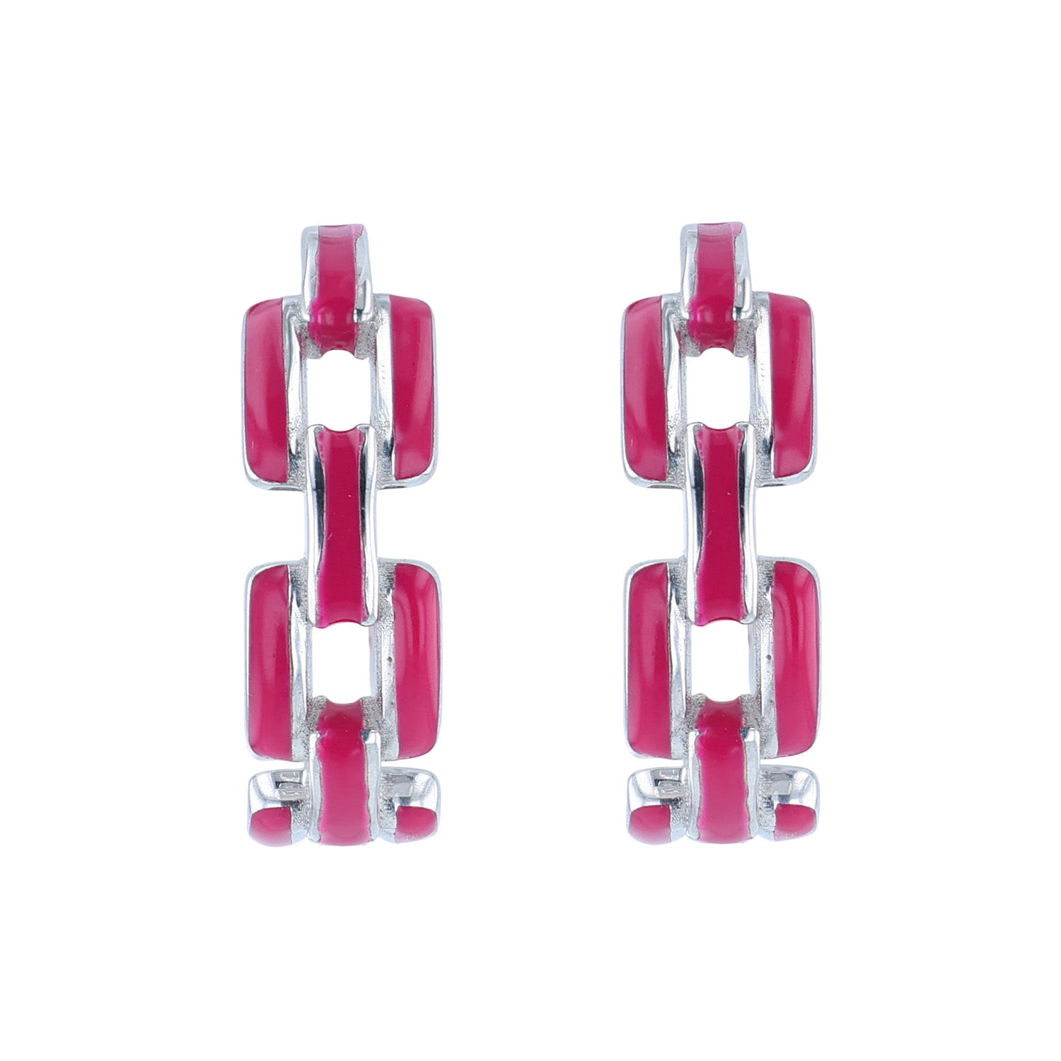SOHO Sterling Silver Magenta Link Hoop Earrings