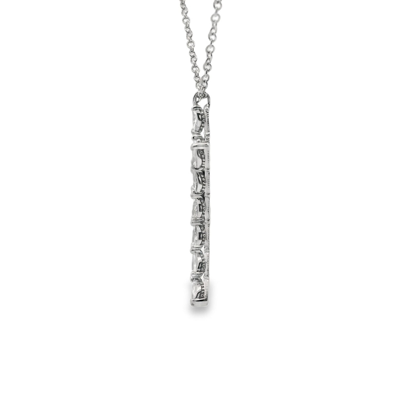 Passing strings of pear cut diamonds hang gracefully from a delicate 18K white gold. Milgrain-accented TACORI Crescents decorate the silhouette of each stone.