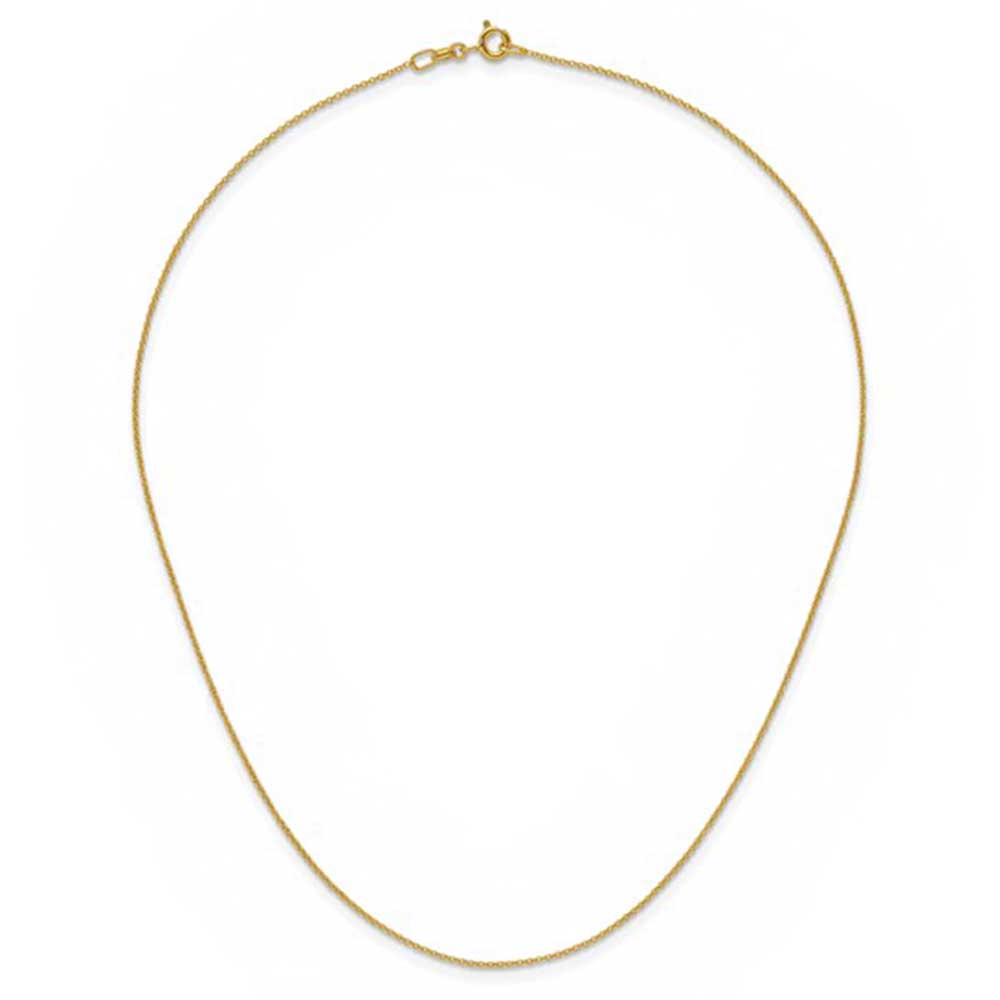 This 18K yellow gold cable chain measures 1.1mm in width and 16 inches in length.