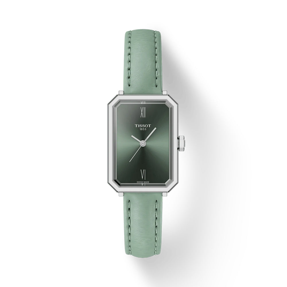 The SRV watch is inspired by the Art Deco times, developed in the 1920s. This time is characterized by geometric shapes and abstract patterns, become a dominant style in architecture, interior design, fashion and graphic arts. While the SRV is directly inspired by a model from 1975, that very design was itself a reinterpretation of Tissot’s earlier creations from the 1920s. The SRV’s quartz movement delivers precision that empowers to move forward fiercely and, with the End-of-Life indicator, the SRV anticipates her next move, so she’s always prepared. More than a name, SRV stands for, Sapphire Rectangle V: a faceted sapphire glass with a rectangular silhouette, and the ‘V’ a nod to its 5-bar water resistance, symbolized by the roman number 5. The leather strap naturally evolves with wear, softening and adapting to your wrist for enduring comfort and a fit that is uniquely yours.