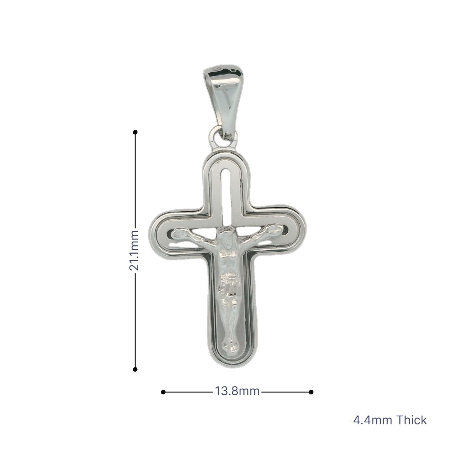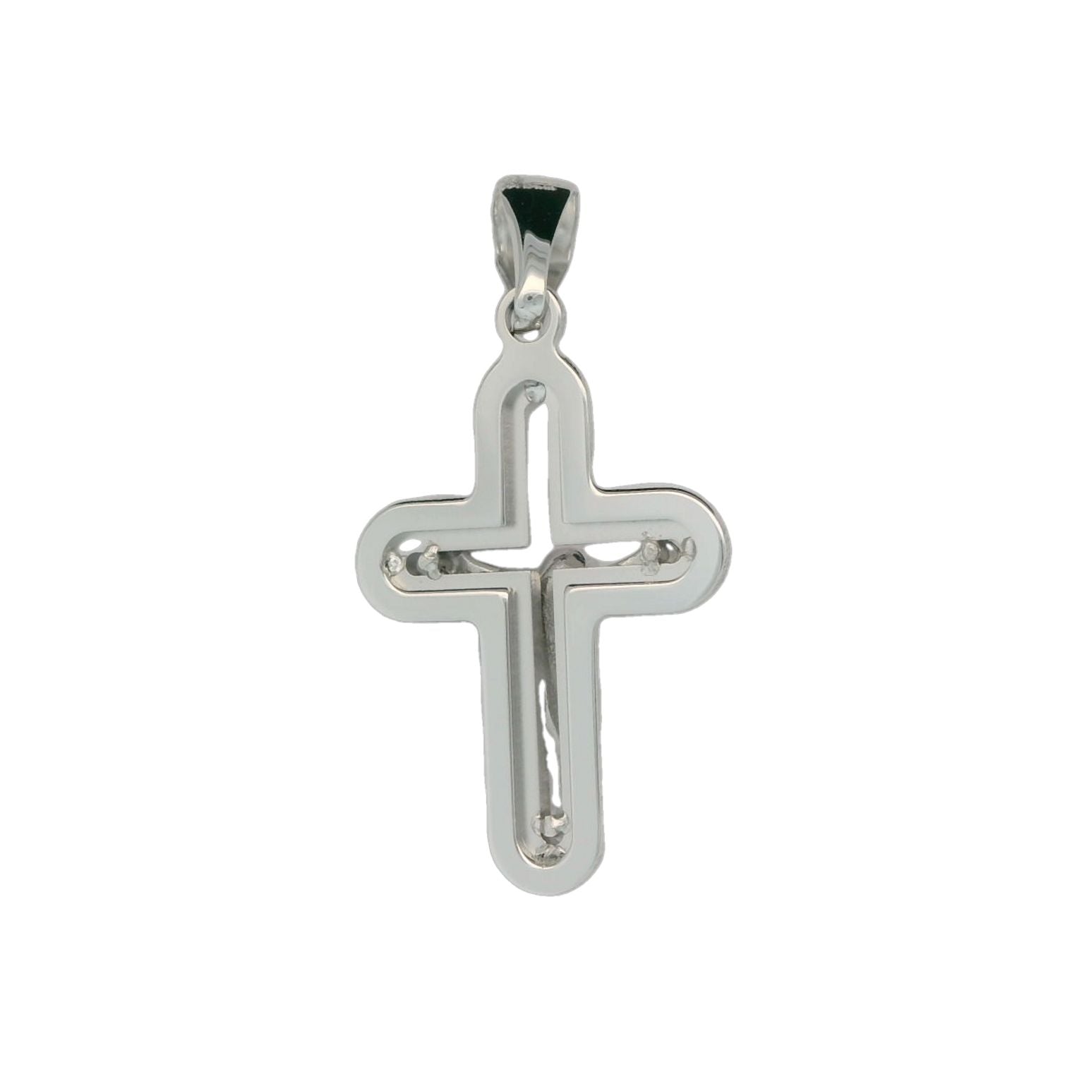 This solid gold crucifix is set in 18K white gold and is made in Italy.