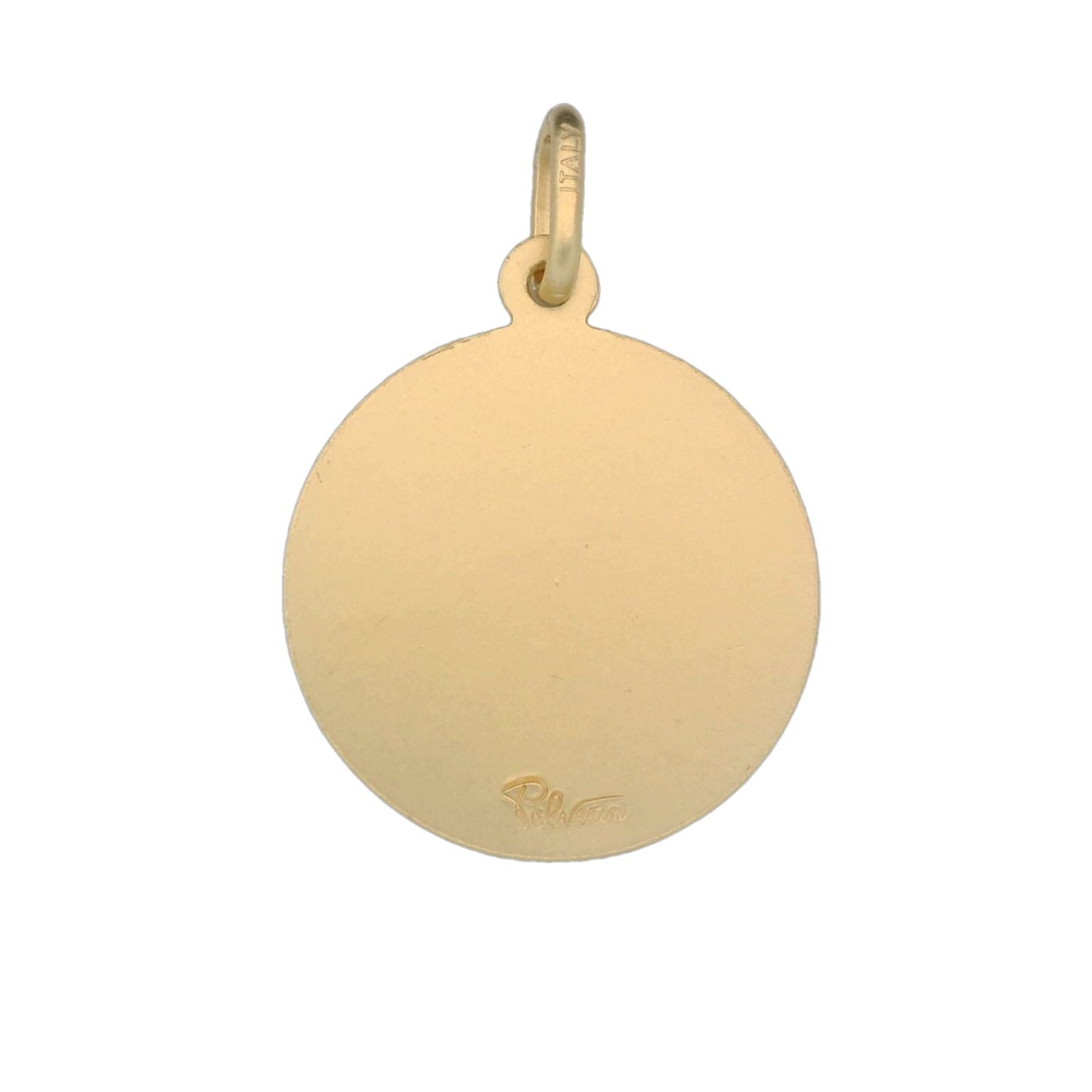 This solid gold miraculous medal is set in 18K yellow gold and is made in Italy. This miraculous medal is coined.