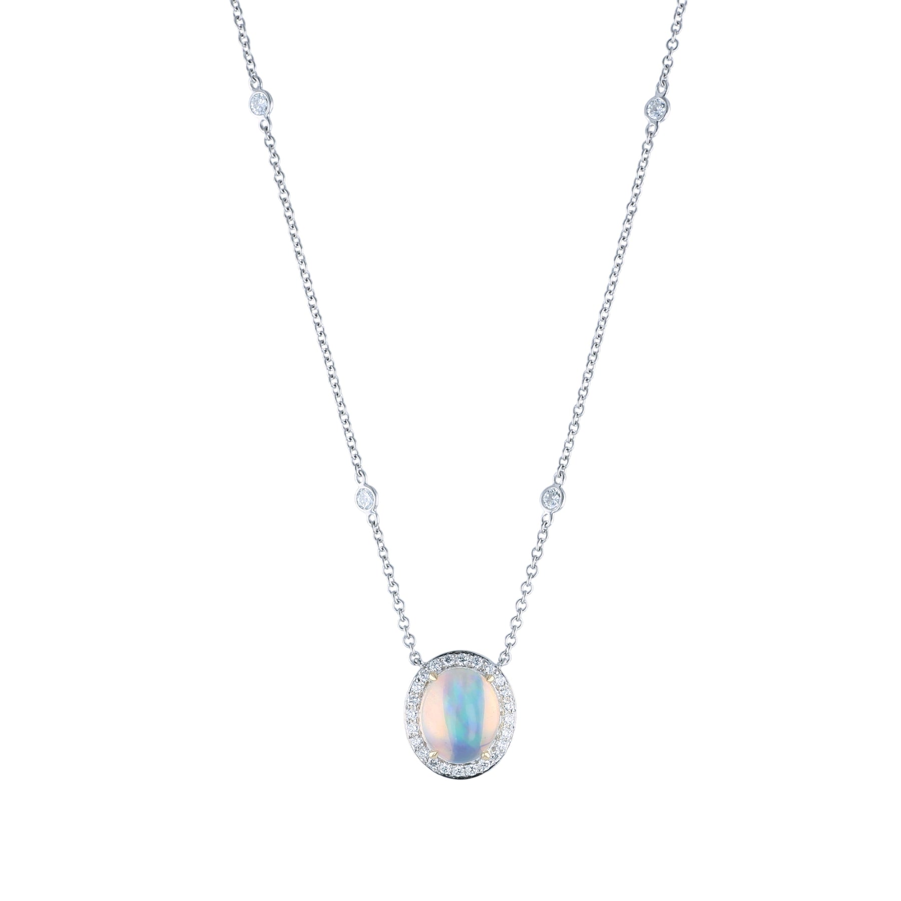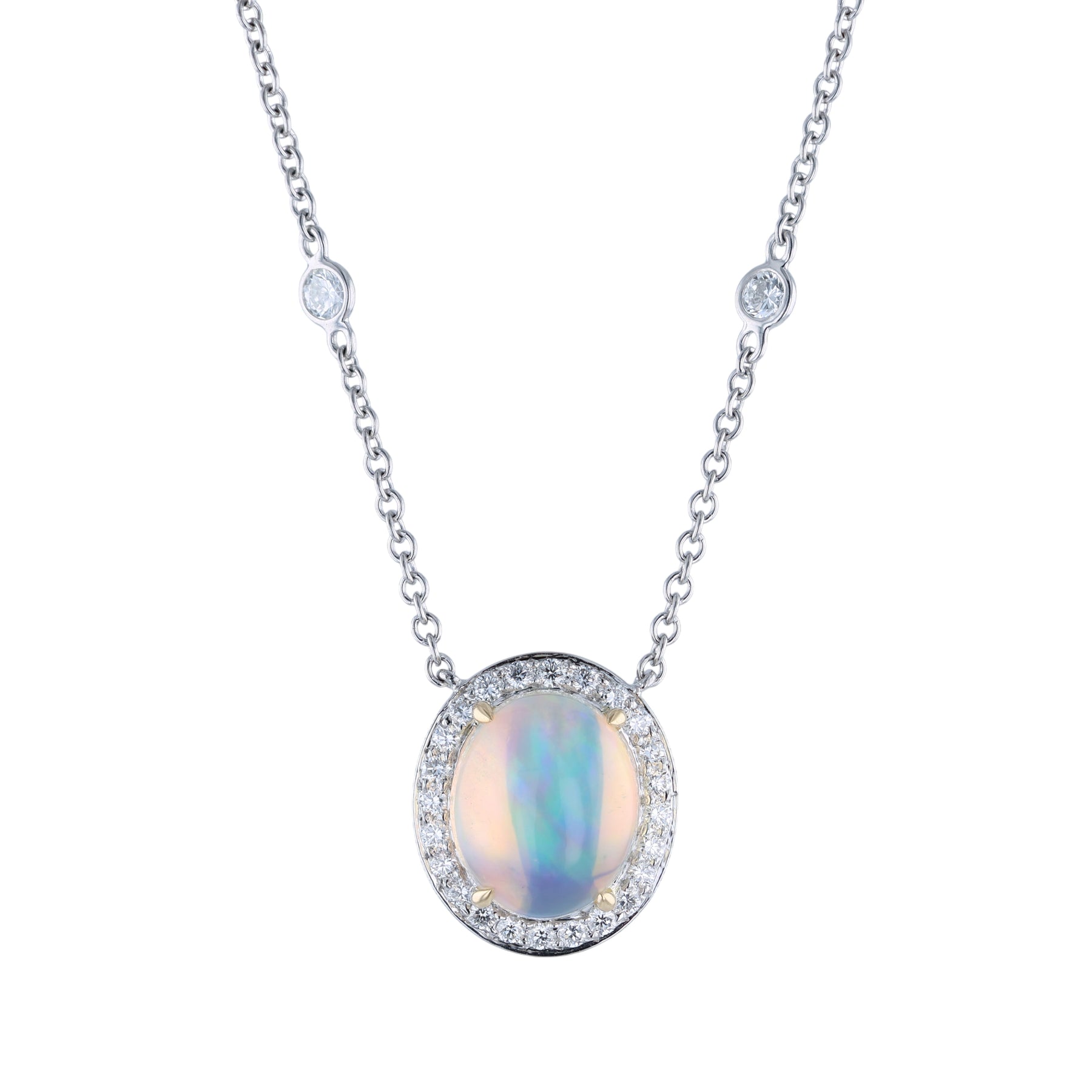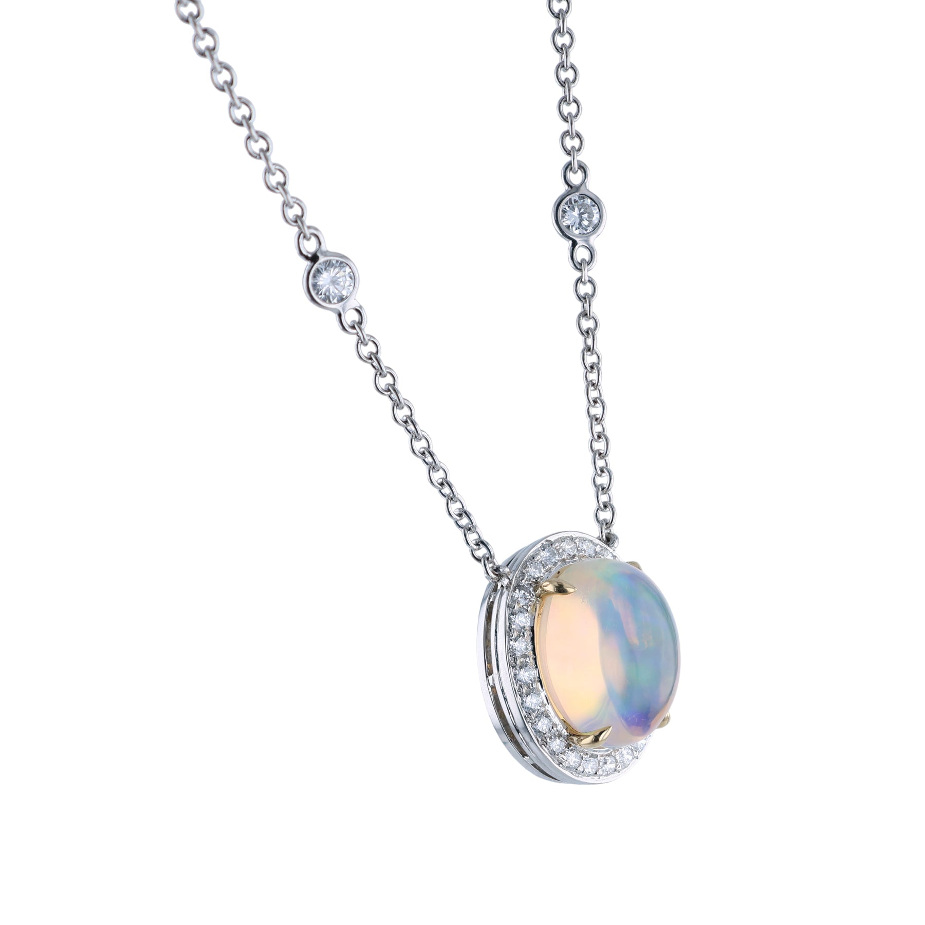 Oscar Heyman Platinum Fire Opal and Diamond Pendant with Chain