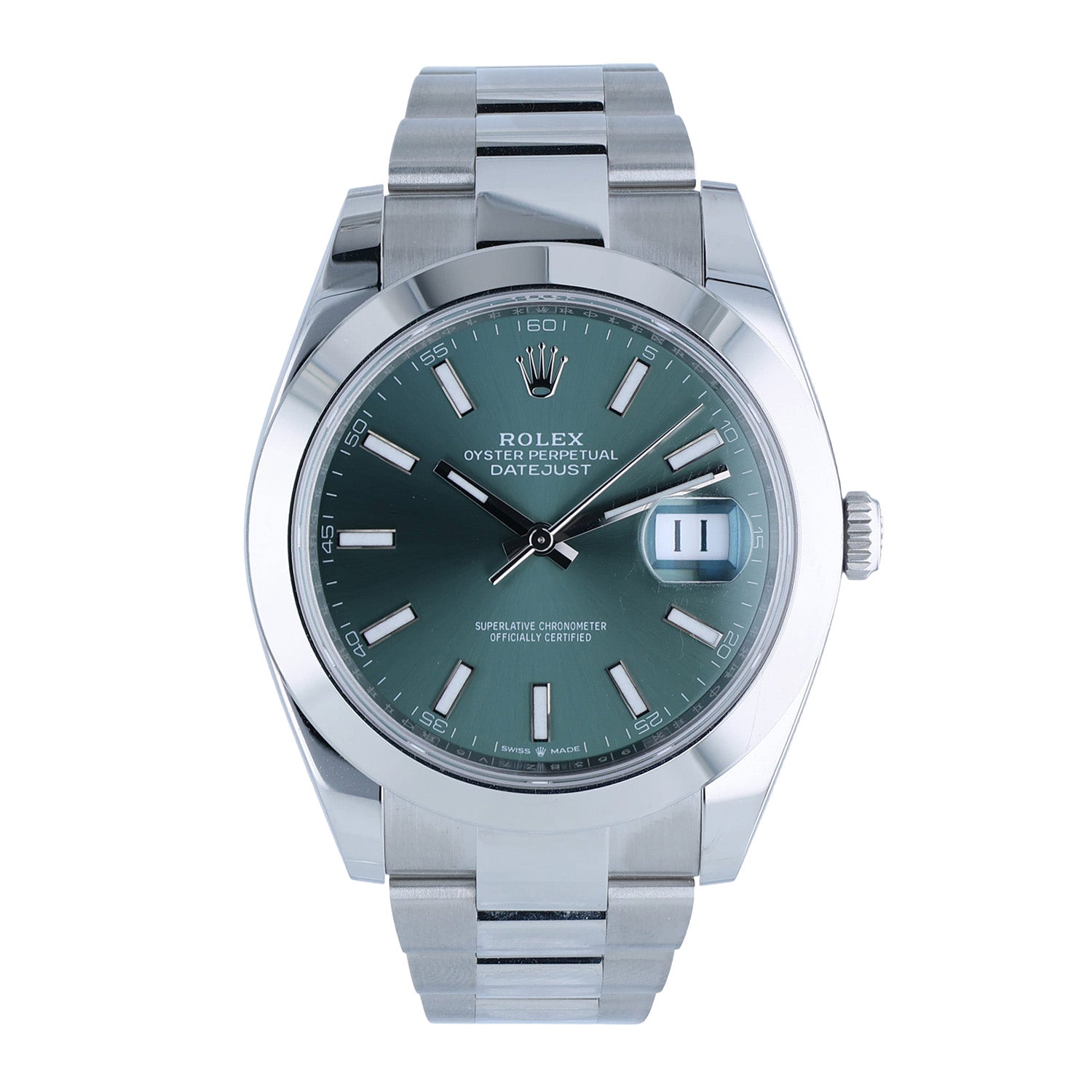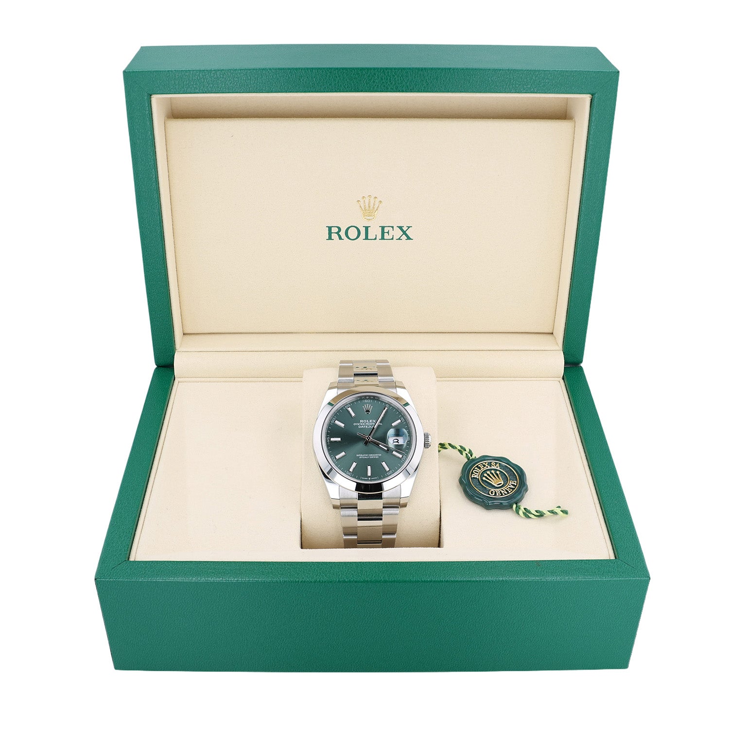 Pre-Owned Rolex 41mm Stainless Steel Datejust Green Stick Dial Oyster Bracelet