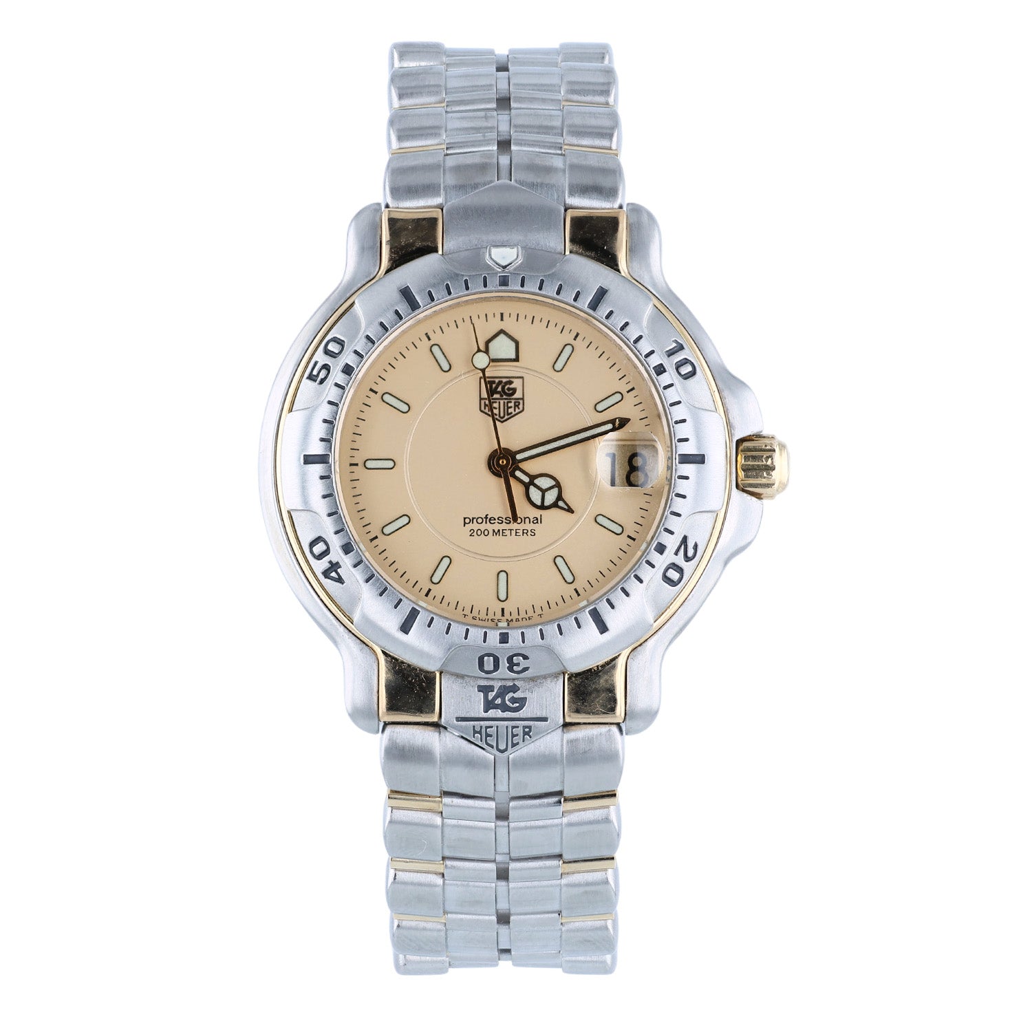 This pre-owned TAG Heuer WH1253 is offered in fair condition, without its original box or papers. A classic two-tone model in stainless steel and gold, it combines sporty design with everyday elegance. Powered by a dependable quartz movement and water-resistant to 200m/660 feet, it remains a desirable choice for collectors and enthusiasts. Approximately 1997. Includes original box.