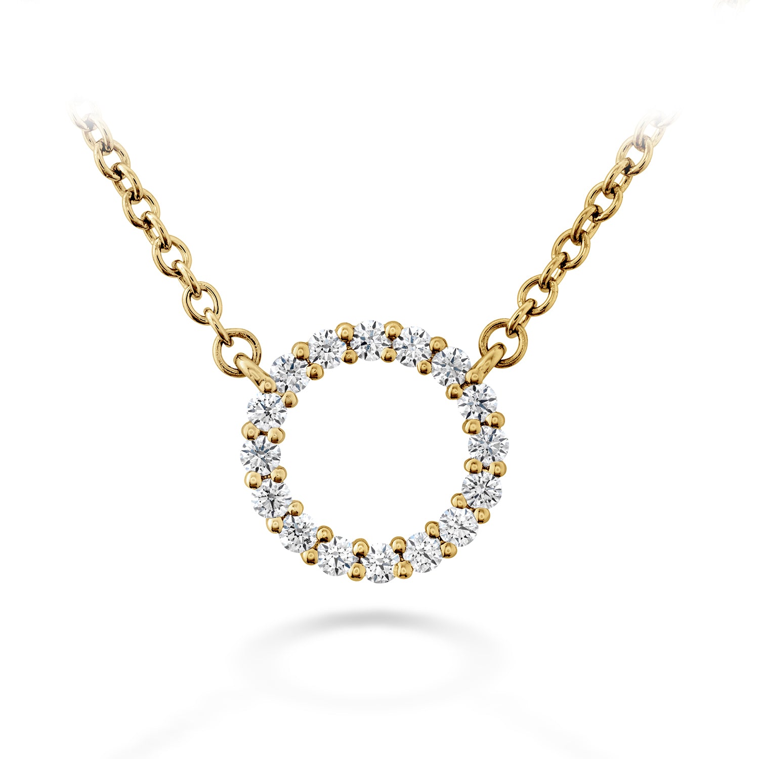 Elevate your jewelry collection with Signature Circle Pendant. The pendant boasts Hearts On Fire's signature perfectly cut diamonds, set in a modern circle design for a touch of elegance. Expertly crafted with attention to every detail, this pendant is a timeless piece that can be dressed up or down for any occasion, adding sophistication to your look and will add a touch of luxury to your jewelry collection.