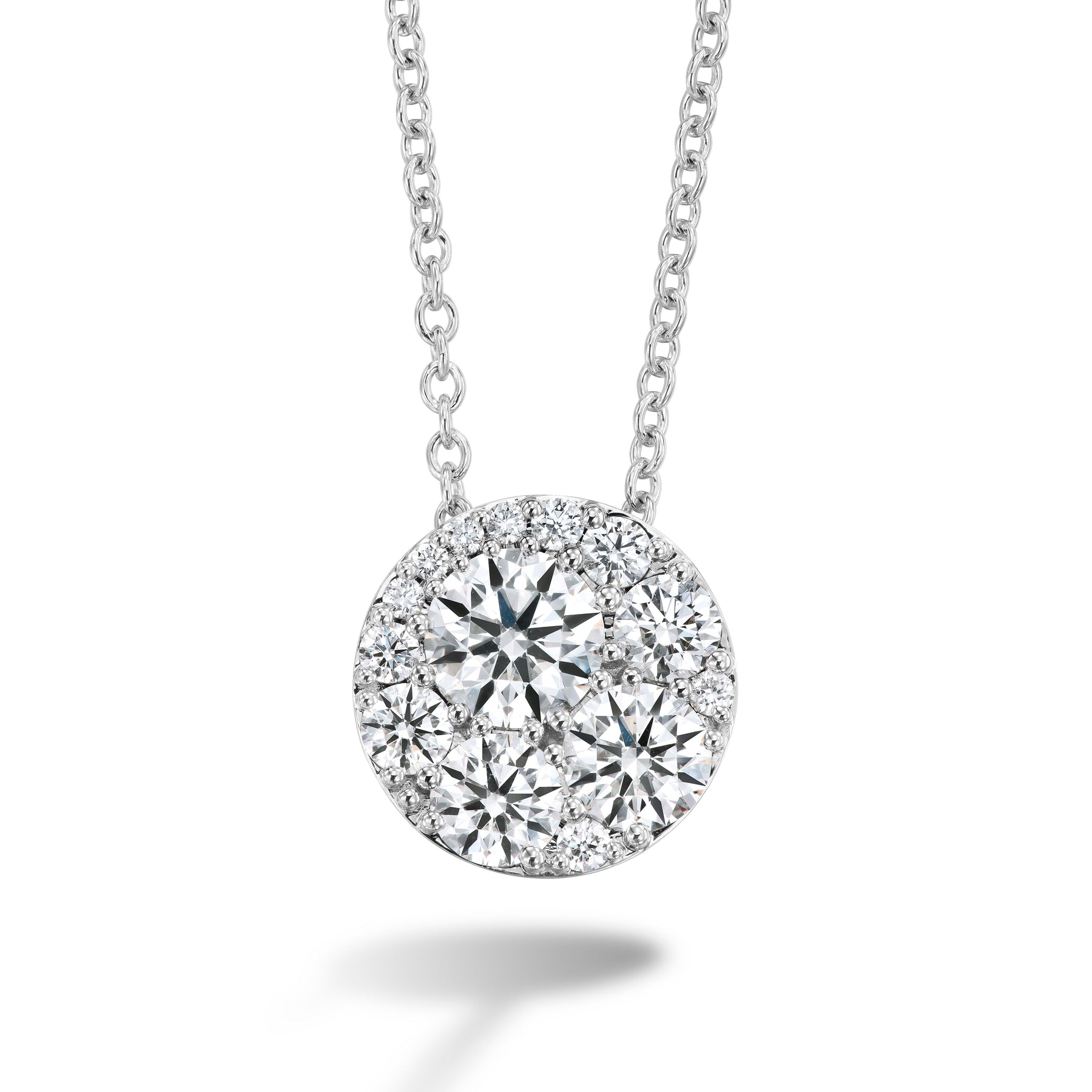 From the Hearts On Fire Tessa collection. This classic diamond necklace will add sparkle to every occasion. This diamond cluster circle pendant will be your new ‘must have’ piece of jewelry!