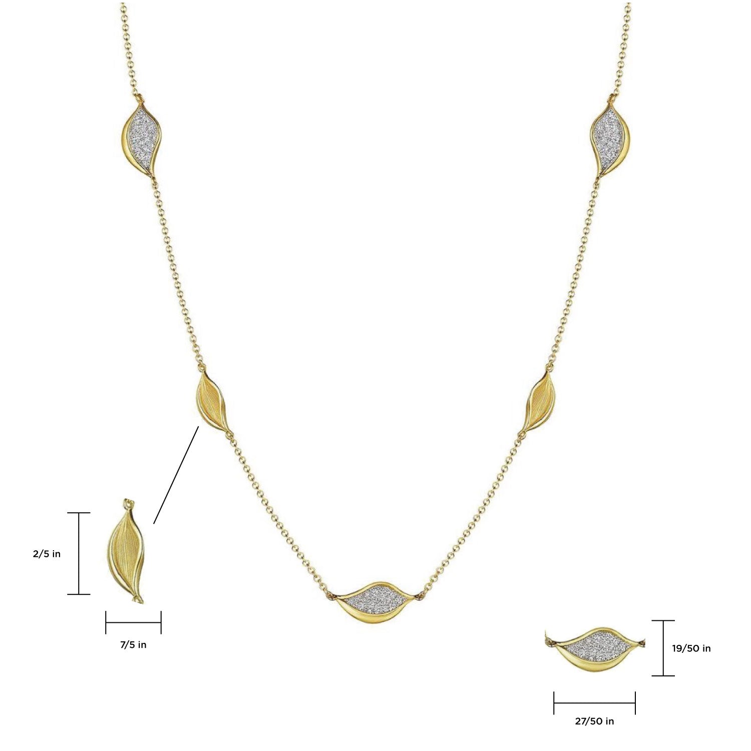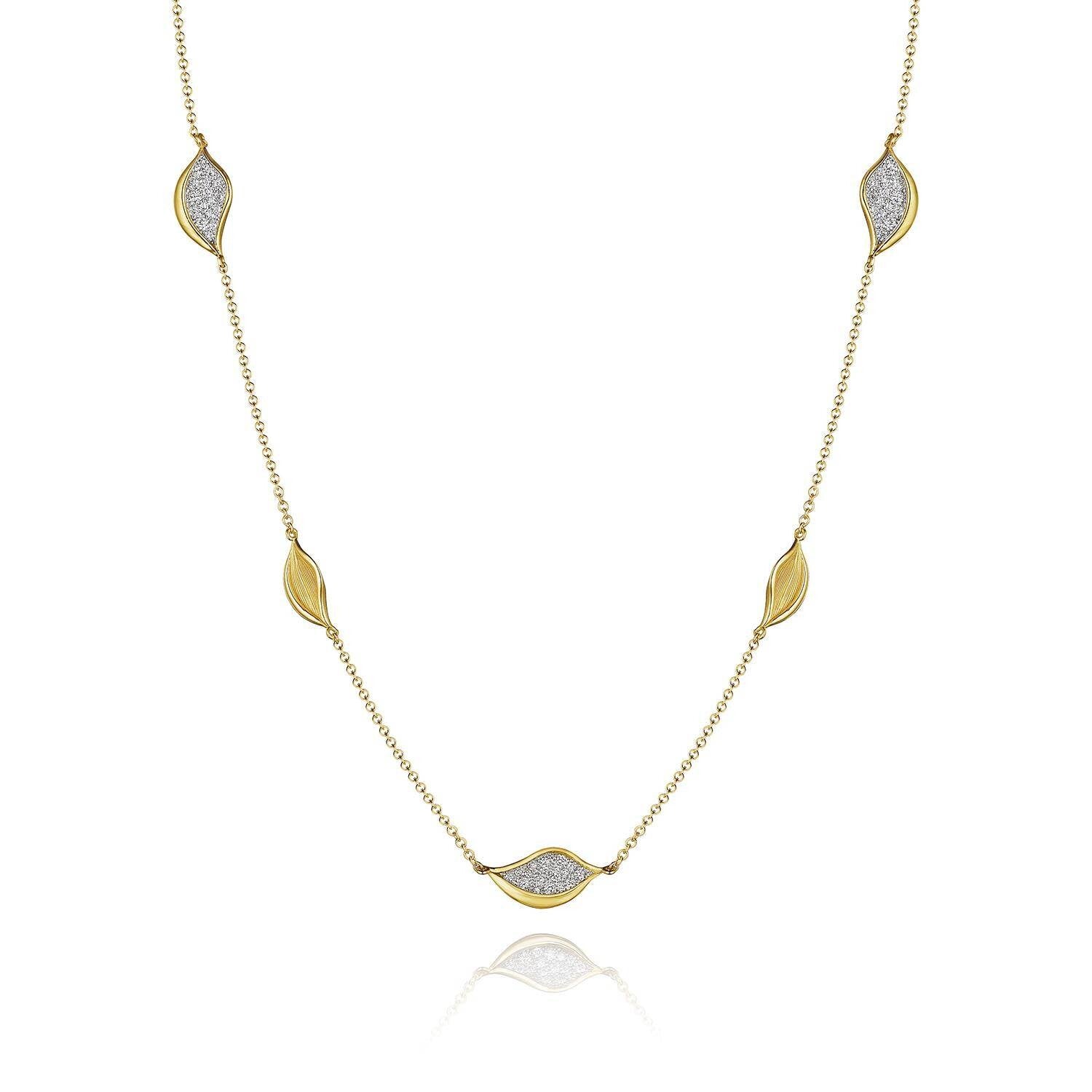 Larger petal links, inspired by a deconstructed dahlia, anchor this 18K yellow gold station necklace, alternating between pavé and engraved textures.