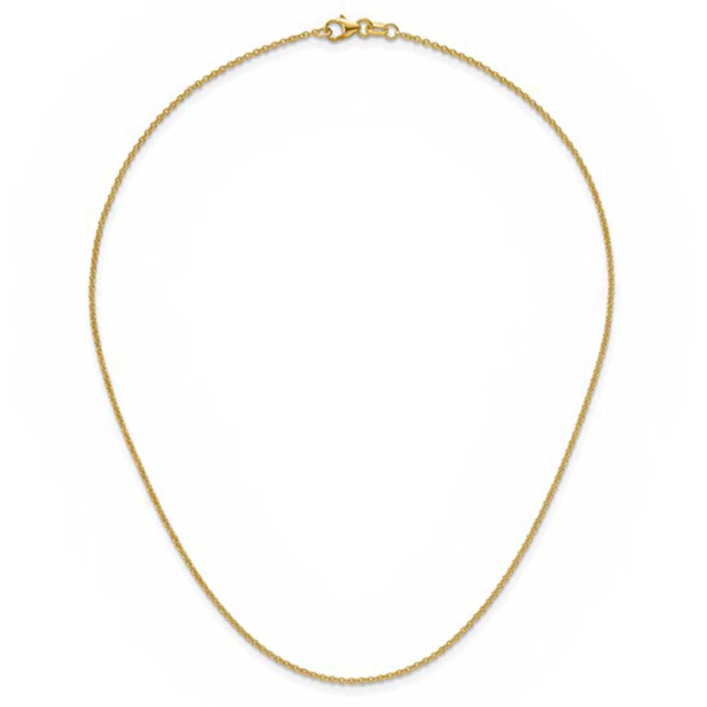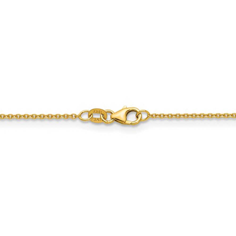 This 18K gold cable chain measures 1.5mm in width and 16 inches in length.