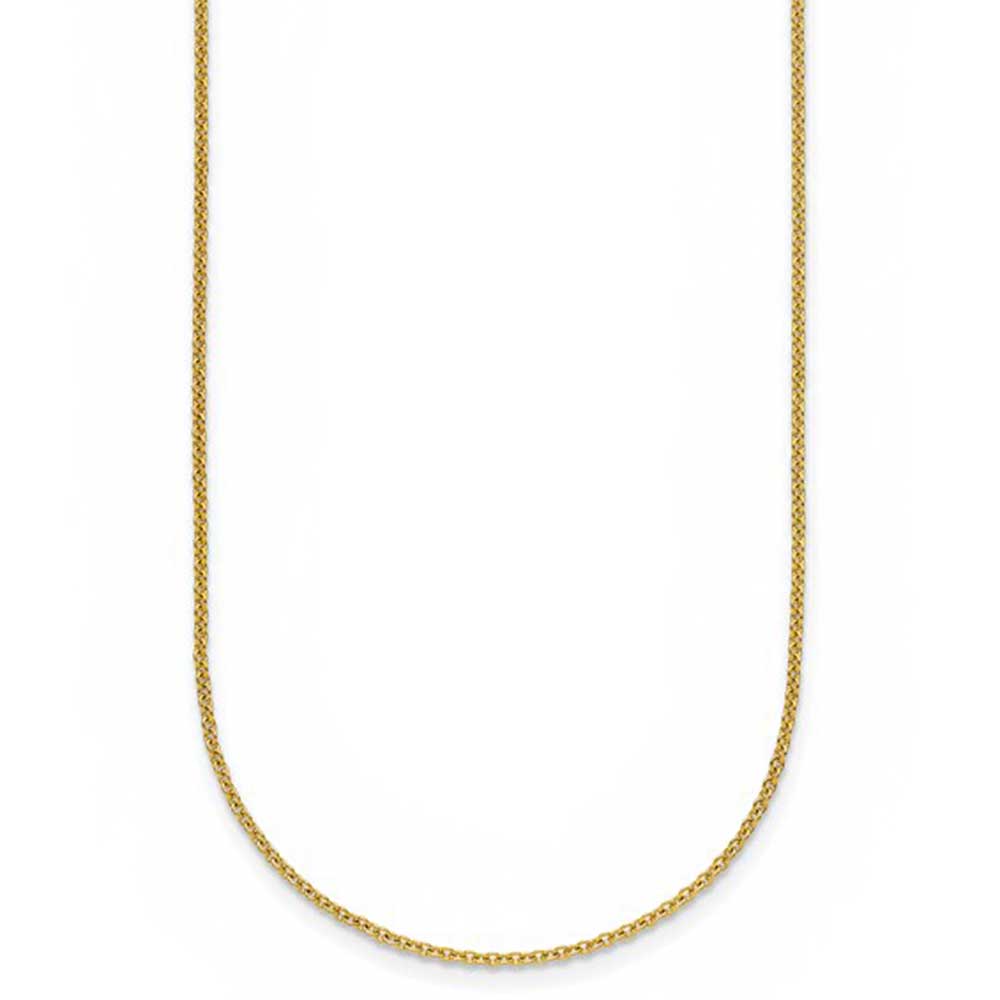 This 18K gold cable chain measures 1.5mm in width and 16 inches in length.