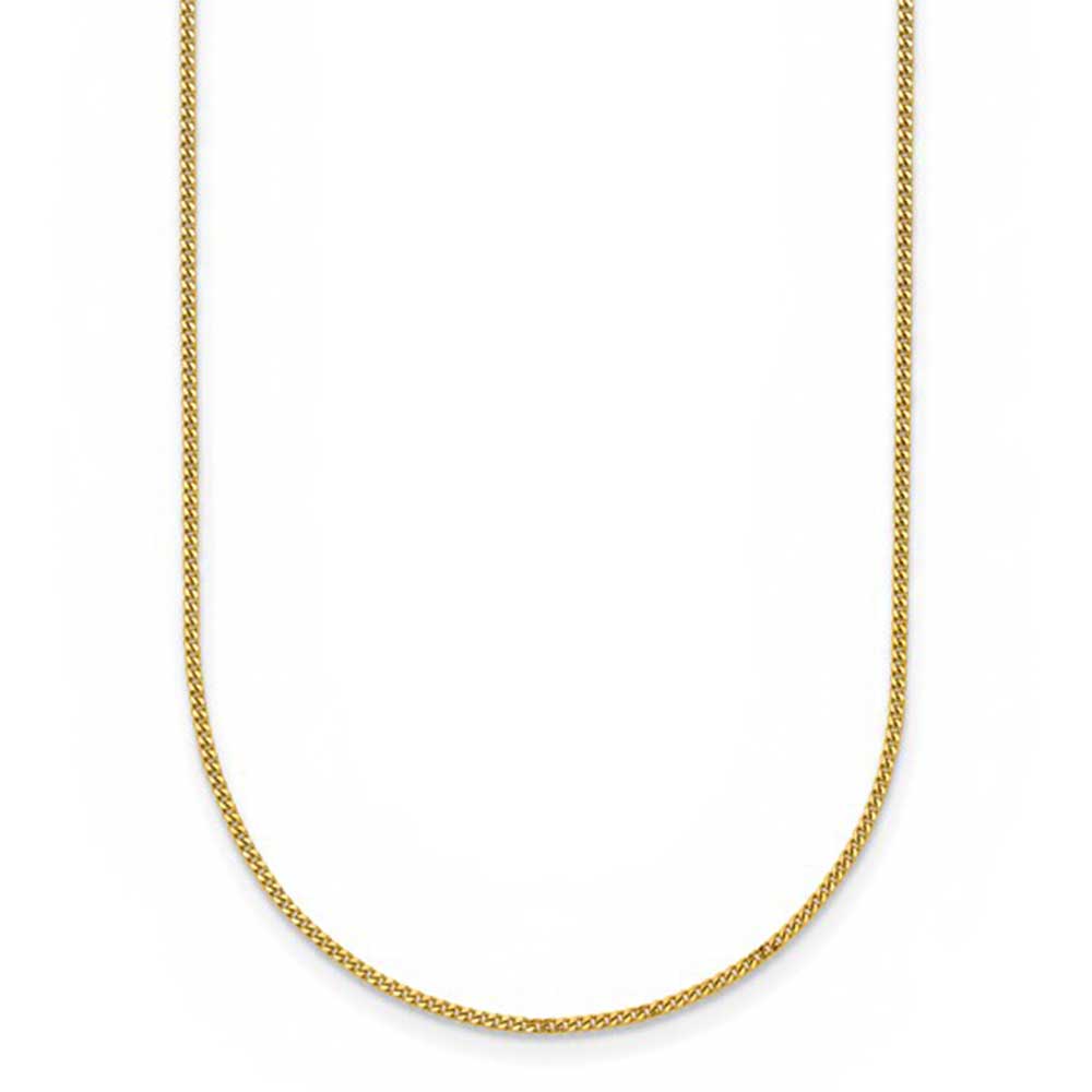 This 18K yellow gold curb chain measures 1.2mm in width and 18 inches in length.