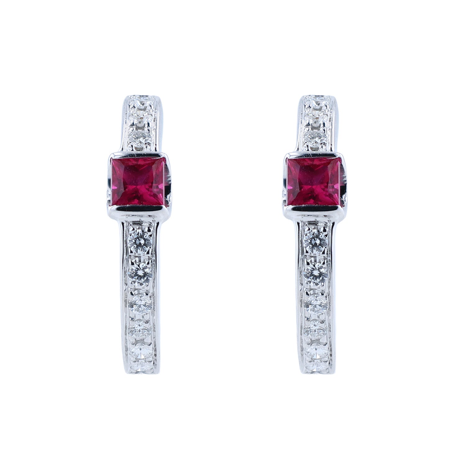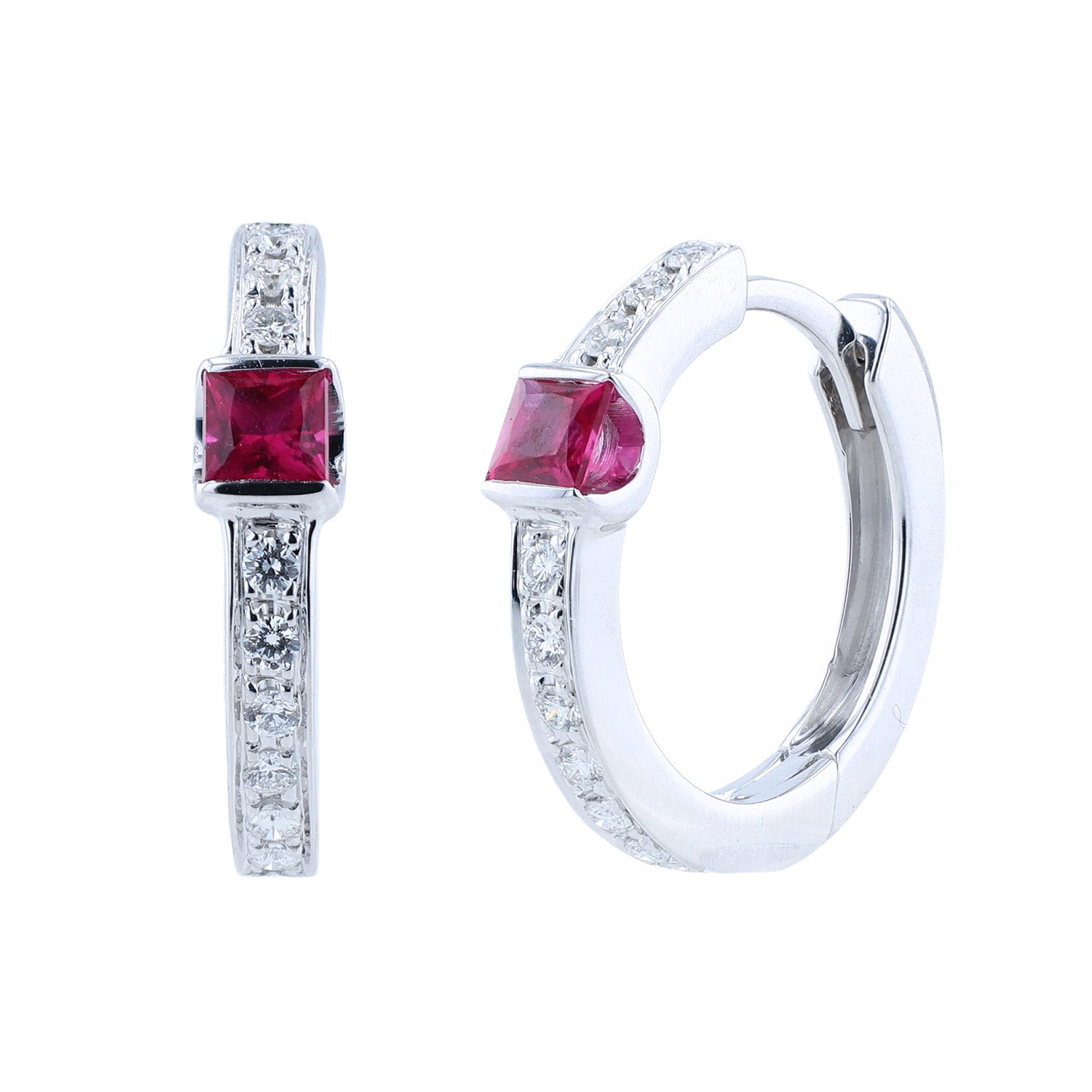 Estate Spark Creations Ruby and Diamond Huggie Hoop Earrings