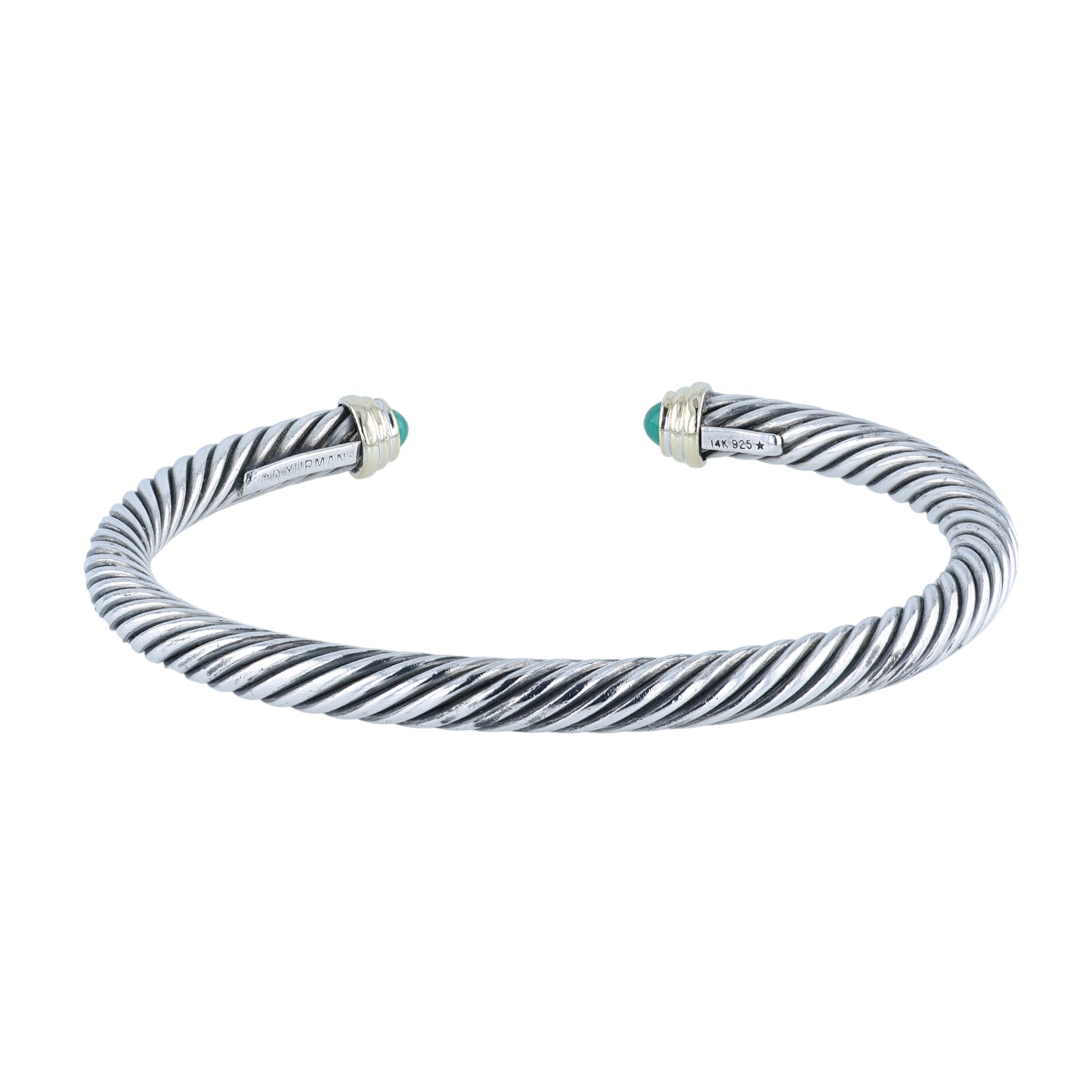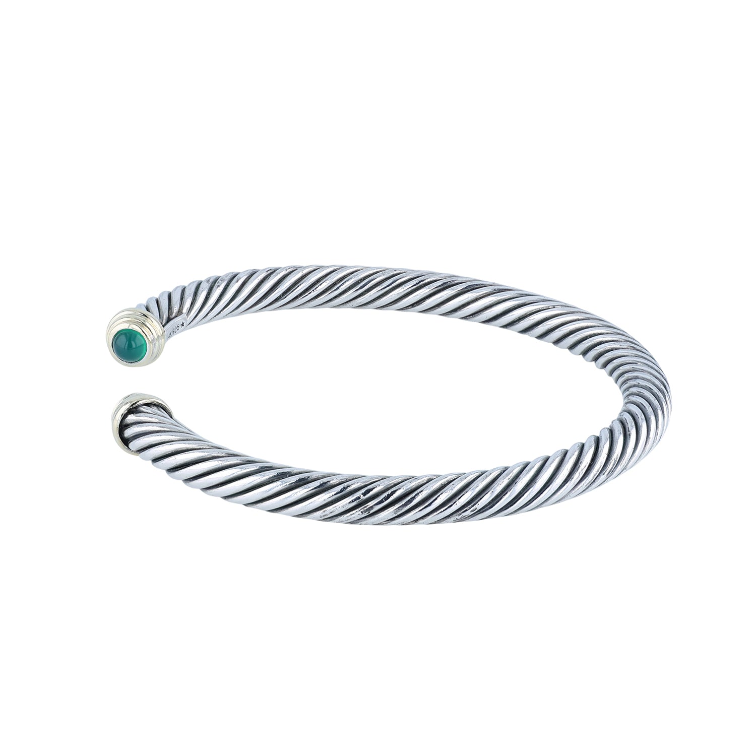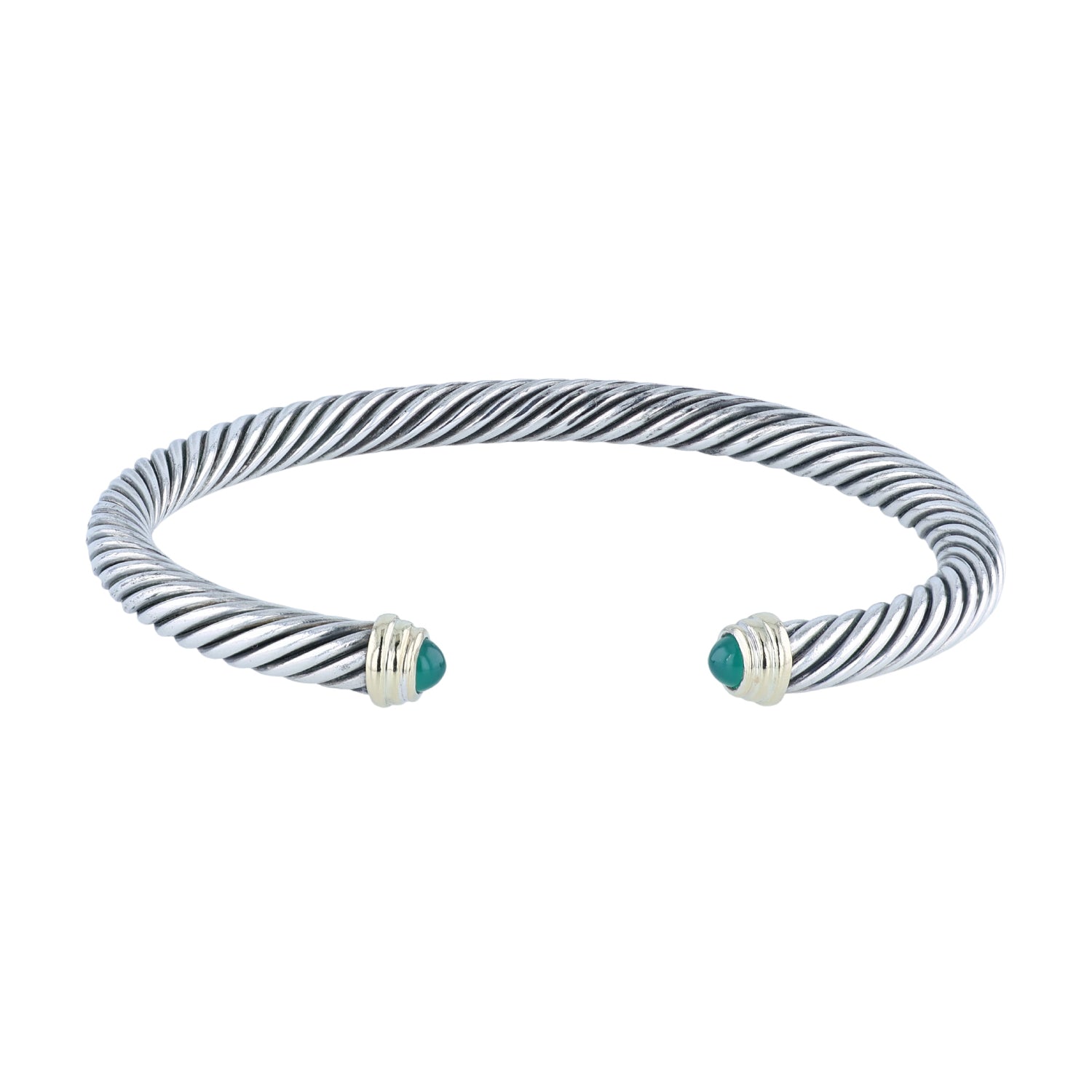 Estate David Yurman Sterling Silver and 14K Green Onyx 5mm Cuff