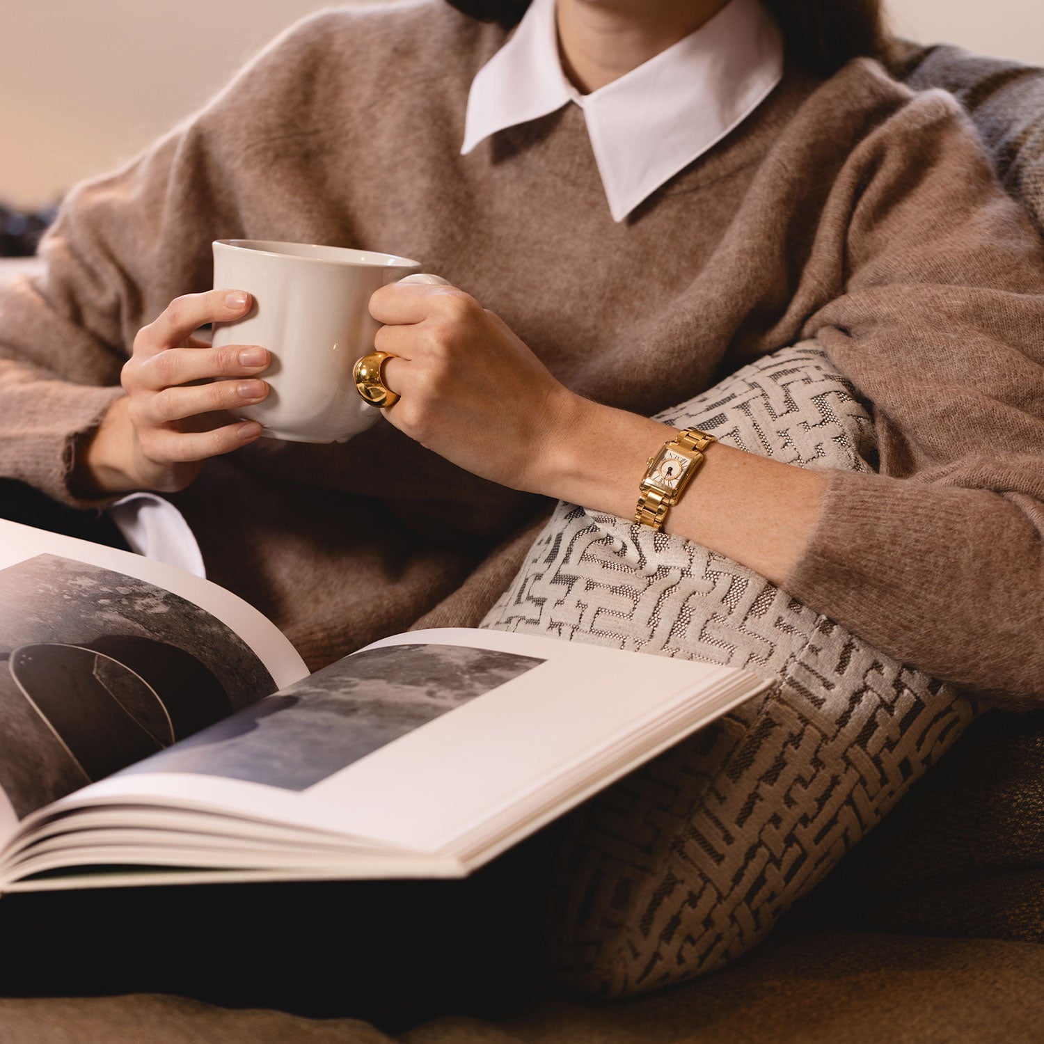 The seamless lines and elegant polished case reveal a classical white dial showcasing intricate “clous de paris” decoration and traditional roman numeral indexes. The Classics Carrée design of the smooth polished case with 34 pavé set diamonds, perfectly blends and embellishes your wrist.